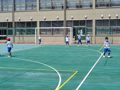 暑さに負けず、元気いっぱい体を動かしています。