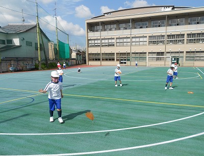 今回は人数を少し減らして、たくさんの人がボールに触れられるようにして行いました。