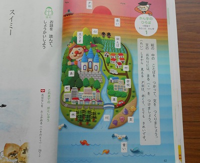 教科書の絵を見ながら、絵の中にある言葉を使って、文を作ります。