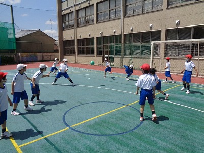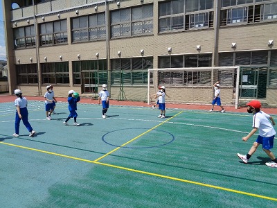 中間休みは、元気にグラウンドへ出て、ドッジボールをしていました。