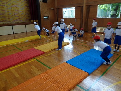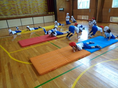 簡単なマット遊びから、マット運動まで楽しく練習しました。