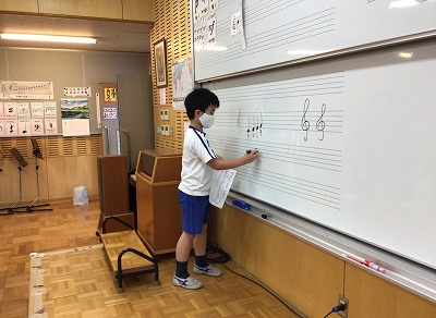 「ト音記号」と「音階」の練習を行いました。2週間ぶりの学習です。