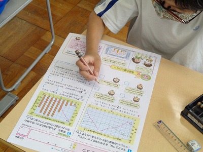 3時間目の算数は「折れ線グラフ」のテストを行いました。数値をしっかり読みグラフを書く事や、そのグラフからどんな事が読み取れるのか、点や線に注意しながら丁寧に解いていきます。