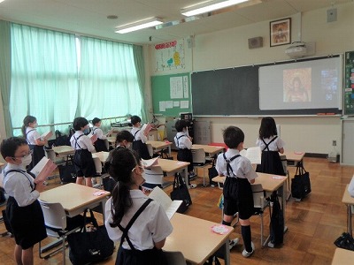 放送礼拝スタートに合わせて、全員で立って聖歌集を持ち、姿勢を正して始めることができました。