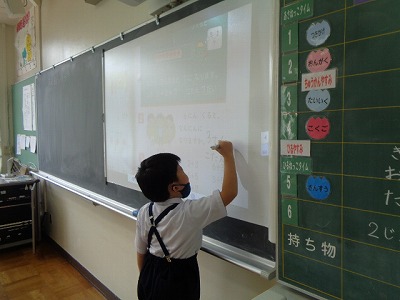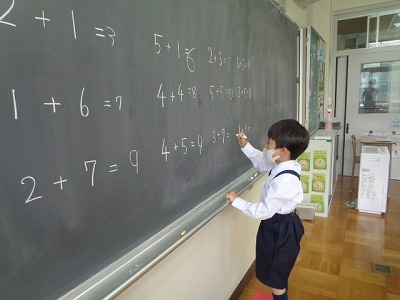たし算の学習です。前回より、学習室と1年教室の2部屋に分かれて、学習に取り組んでいます。今日は「ふえるといくつ」の学習をしました。