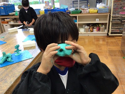 油粘土を「ぎゅっ」とにぎった形から「何に見えるか」を考えながらつくっていきました。