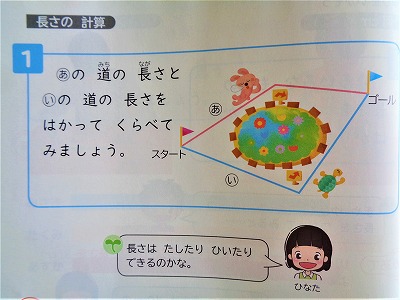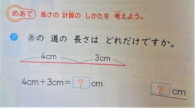 長さの計算は、単位をつけて式に書き、同じ単位のところを計算すればよい。