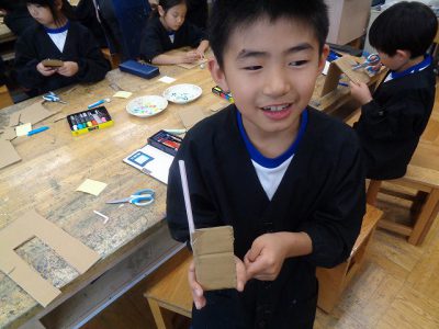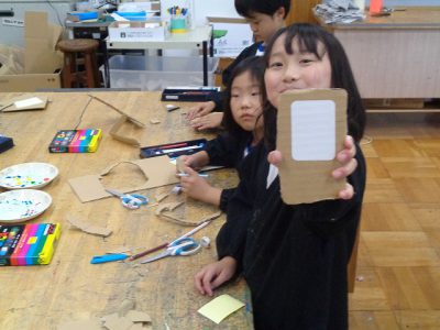 今日は、段ボールで携帯電話を作りました。