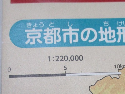 縮尺のものさしを使って、京都駅から10kmはなれた場所は、どこになるのかを調べました。