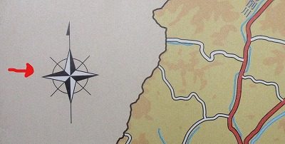 また、地図上の方角も確認しました。ポイントは方位記号です。