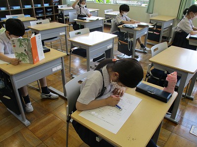 教科書の絵を見ながら動物の様子を文章にまとめました。