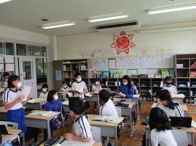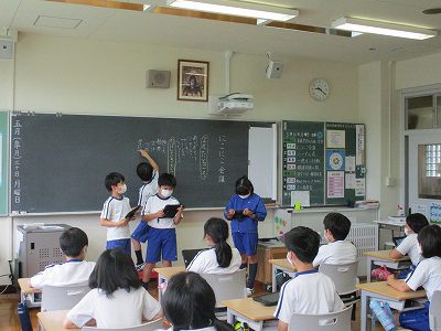 声を揃えて4人で言うところや、クイズの出し方など、説明の仕方を工夫しながら発表することができました。