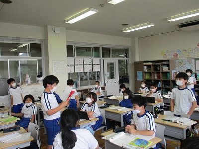 今週の家庭学習の計画を立てた後、音読をしました。