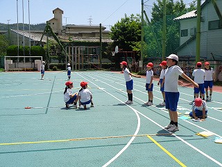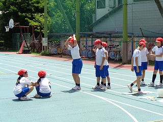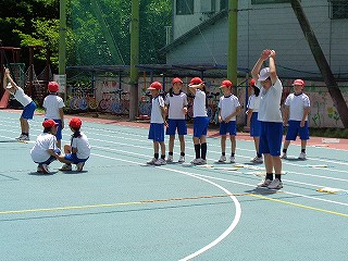 今、体育学習では、立ち幅跳びの練習もしており、まさに、大きく「うでをふって」少しでも遠くへ跳べるよう、何度も練習しています。