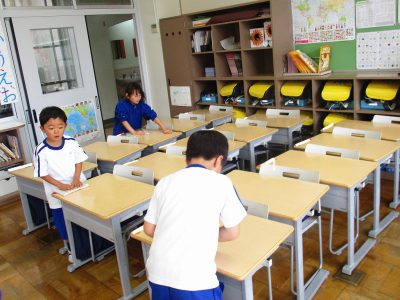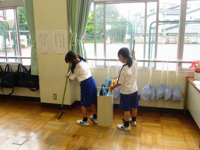 チャイムと同時に掃除に取り掛かり、6年生が来てくれるまでの時間は、1年生だけで掃除を進めています。