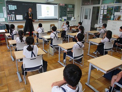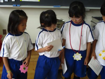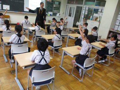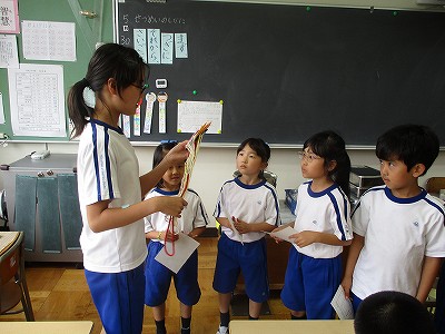 昔の文教小学校の様子もお話していただき、子どもたちは、興味津々!