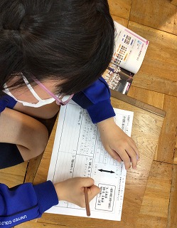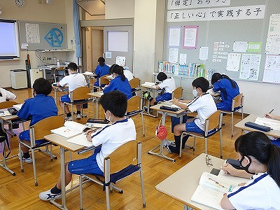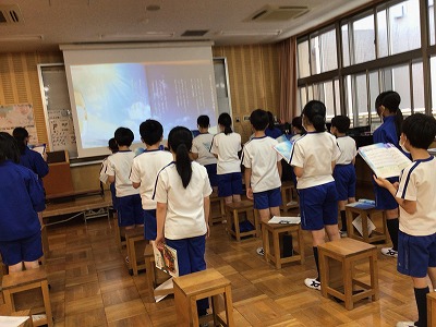 「♪ハローシャイニングブルー」の歌唱で、音楽の時間が始まりました。