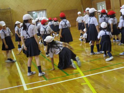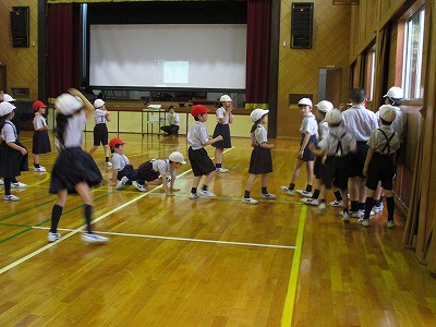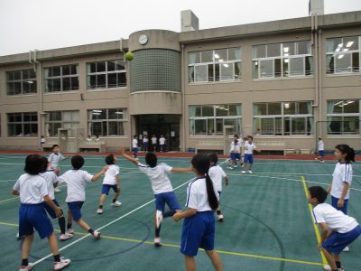 朝休み、5年生が4年生を招待して、互いに交流試合を楽しんでいました。