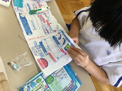 ボタン付けにも、玉結び・玉どめをきっちりと行います。こうして、同じ作業も違う場面で繰り返すことで、基本の裁縫技術が身についていくのですね。