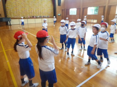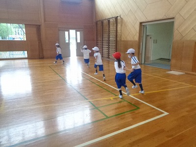 運動場がお天気の関係で使えず、体育館での体育になりました。