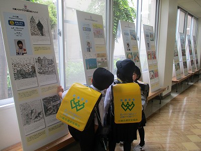 今週初めより、「三菱アジア子ども絵日記フェスタ」のグランプリ作品のパネルを、校舎1階・2階に展示しています。