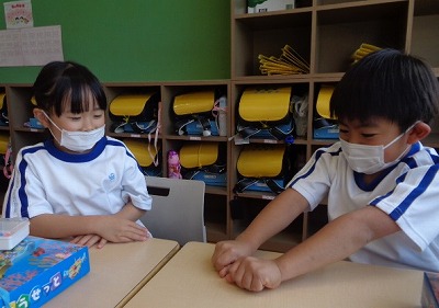 1と7、2と6、3と5・・・など組み合わせを確認して、ペアでおはじきを使って活動しました。