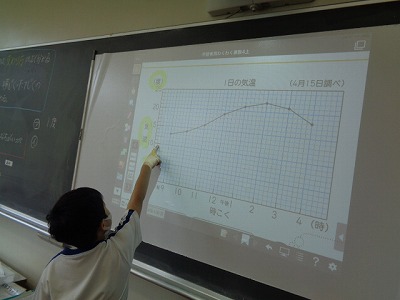 角とその大きさの単元が終わり、今日からは「折れ線グラフ」についての学習が始まりました。3年生で取り組んだ「棒グラフ」の学習を活かして、まずは折れ線グラフの読み方について学習します。