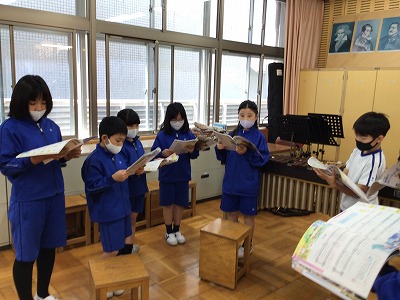 音楽室に集まり、グループ毎に発表しました。伴奏無しでの合唱にチャレンジです。音をしっかりととって、歌うことの大切さを学習してくれたことでしょう。