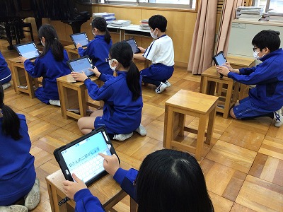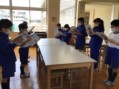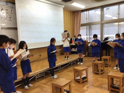 全校で歌っている「♪赤い屋根の家」や「♪あの青い空のように」を、さわやかな歌声で届けていました。