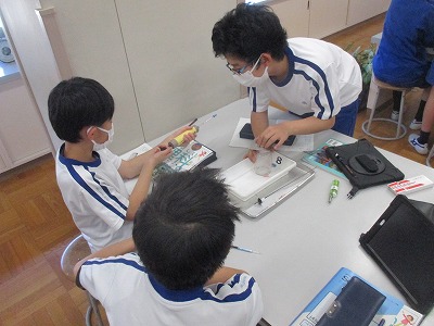 続いて、空気組成の変化を調べる方法として、石灰水を用いました。