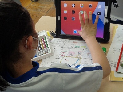 子ども達一人一人が試行錯誤を重ねながら、学校周りの建物や通り、自然をマップに取り入れていました。