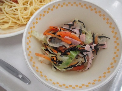 ☆ 大根、キャベツ、人参、ハム、ひじきのサラダは、ゆず風味のドレッシングで味つけしました。