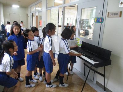 5/7月【モンシロチョウの幼虫の観察・体育】 お知らせ 2018/05/07 理科の学習で「モンシロチョウの成長」について学習を進めています。 今日は、幼虫の観察をしました。 まずは、自分の目で見て観察。 大きさや形、色を見て記録していきます。 さらに、虫めがねも使って観察しました。 一日雨だったので、図書室や体育館に行く人が多かったですが、 廊下の様子はというと… タイマーで時間を計って、交代で演奏。 みんな本当に上手です。 体育は、かけっこをしたり、リレーでバトンの練習をしました。 バトンパスする時の「はい!」や、受け渡しに使う手の確認をしました。 ←前の記事 お知らせの一覧 次の記事→ 文教トピックス 学年だより1年 学年だより2年 学年だより3年 学年だより4年 学年だより5年 学年だより6年 一覧はコチラ カテゴリー 文教トピックス (200) 文教トピックス (5) 学年だより1年 (160) 学年だより1年 (3) 学年だより2年 (3) 学年だより2年 (160) 学年だより3年 (3) 学年だより4年 (3) 学年だより5年 (3) 学年だより6年 (3) 文教小ニュース (4,428) お知らせ (1,004) イベント (12) 入試関連 (13) 2024年度 (1,063) 文教トピックス (198) 学年だより1年 (172) 学年だより2年 (170) 学年だより3年 (171) 学年だより4年 (177) 学年だより5年 (175) 2023年度 (878) 文教トピックス (204) 学年だより1年 (165) 学年だより2年 (167) 学年だより3年 (169) 学年だより4年 (173) 2022年度 (738) 文教トピックス (216) 学年だより1年 (174) 学年だより2年 (174) 学年だより3年 (174) 2021年度 (571) 文教トピックス (217) 学年だより1年 (177) 学年だより2年 (177) 2020年度 (455) 文教トピックス (249) 学年だより1年 (206)