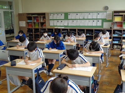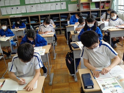 2時間目の社会は「くらしを支える水」という単元の学習を進めています。今日は、京都市の給水量のグラフを見ながら、人口は増えているのに給水量が減っているのはどうしてだろう?という学習課題について考えました。「水道代が高くなったから、みんなが水をあまり使わなくなった」など、鋭い意見があがります。