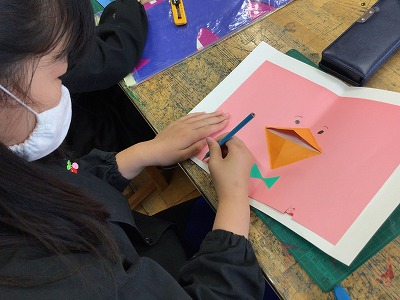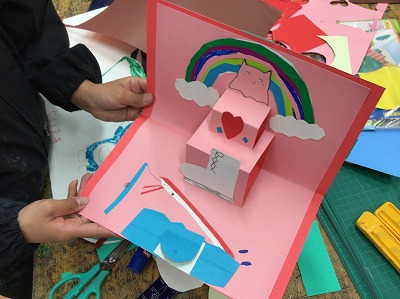 先週に引き続き、図工は「飛び出す仕掛けのカードつくり」です。