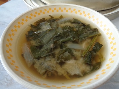 カロテンがたっぷりのほうれん草と玉ねぎを使った味噌汁です。野菜がしんなりとするので、たくさん食べられます。今日もおいしくいただきました。