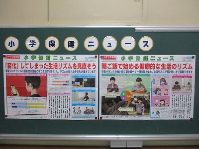 保健室に掲示してある「小学保健ニュース」も、生活リズムについての内容になっています。