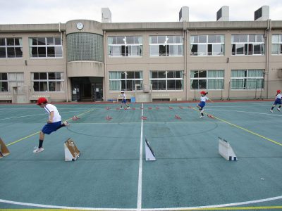 リズムよくハードルをとびこえる練習をしました。