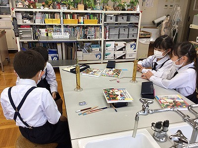 この苗がどのように育つのかなあ……と熱心に観察しています。
