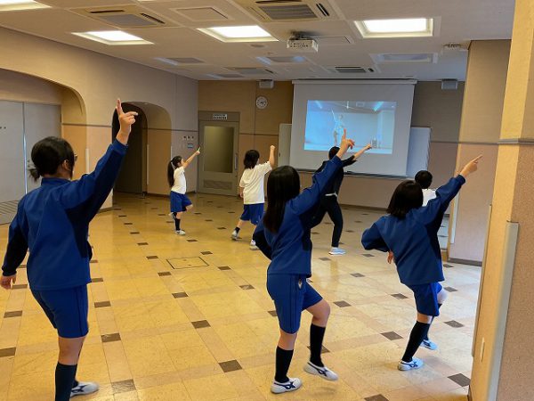 ダンス教室です。前回取り組んだ「学園120周年記念ダンス」の確認をしました。
