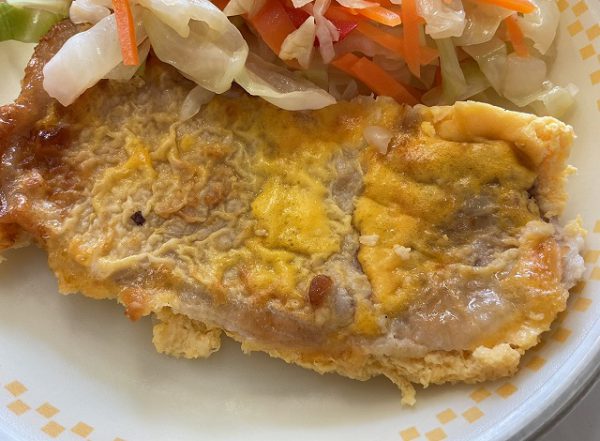 ☆ 「豚肉のピカタ」は小麦粉をはたいた豚肉に卵をからませて焼きました。