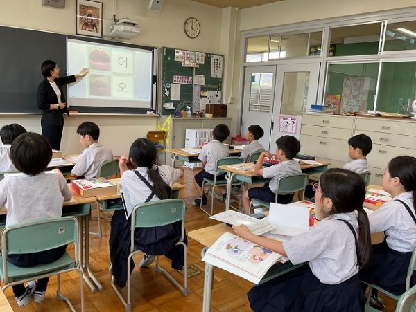 基本的な文字の学習もしました。韓国の小学生との直接交流で、これまでの学びを発揮します!