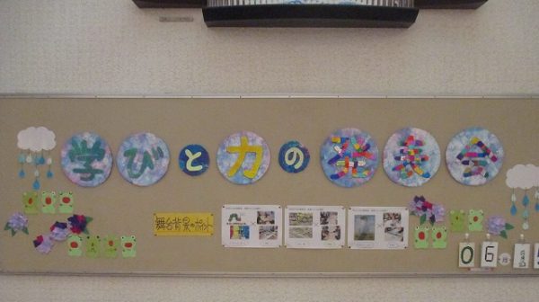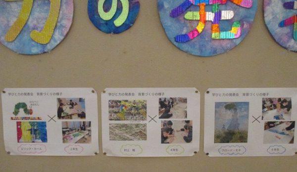 玄関の発表会掲示です。各学年舞台背景の説明と作業の紹介がありました。あらためて、その奥深さを感じます。