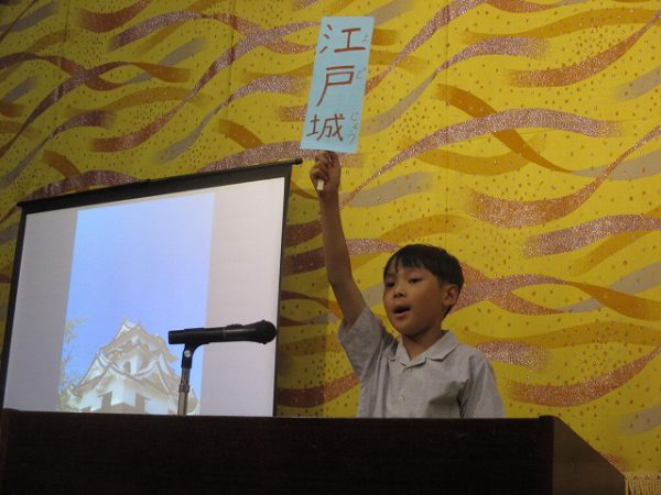 レストランから頂いたメッセージカードには「と」と書いていありました。不思議です。その後、ことわざクイズ大会があり、会場のみんなと一緒に考えました。そしてもらった賞に「だま」が書かれていました。頂いたすべてのメッセージを合わせると、そう。「ことだま」です。