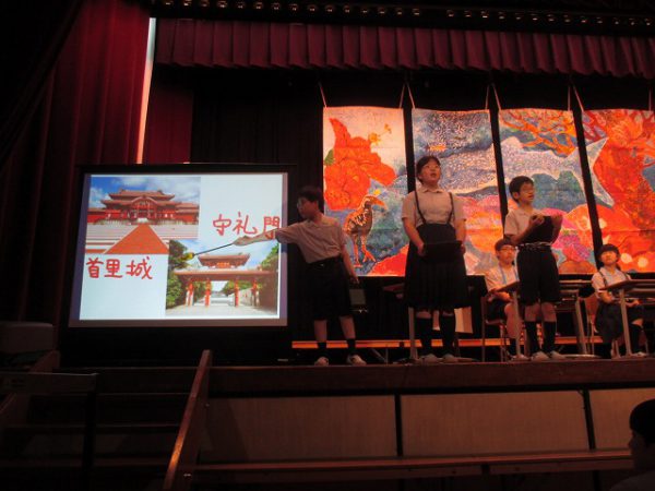 発表ではクイズを通して、低学年にも分かりやすく沖縄について伝えました。