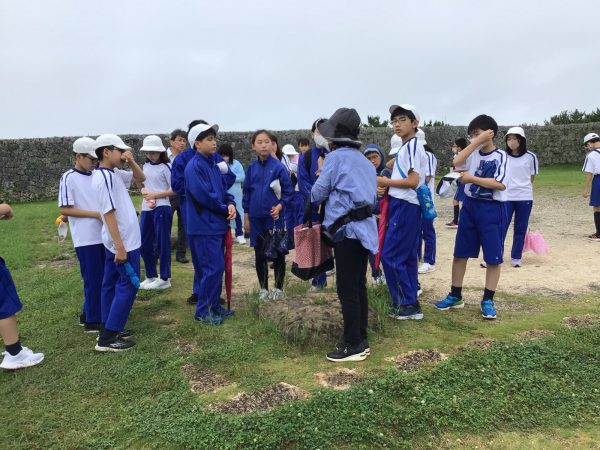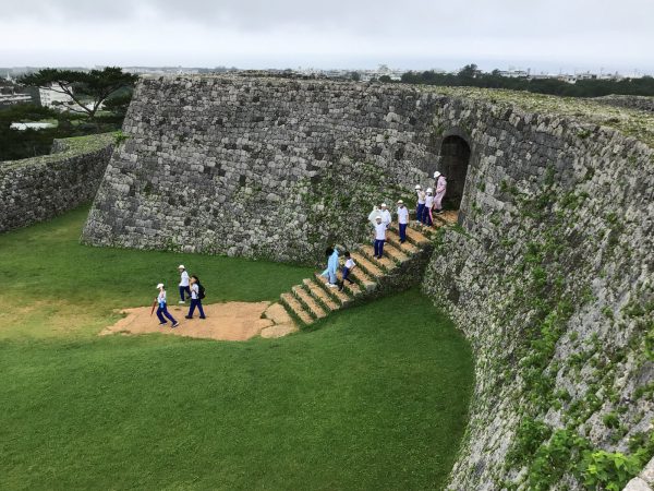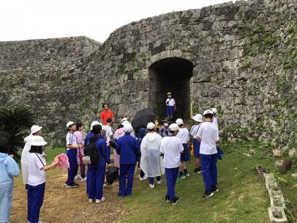 昼食後、世界遺産の座喜味城跡に向かい、地域の平和学習ガイドさんと出会いました。