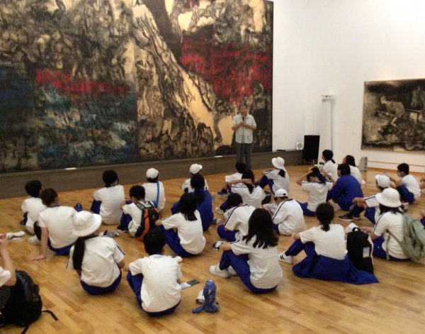 「沖縄戦の図」の前で、館長さんからお話を聞きました。