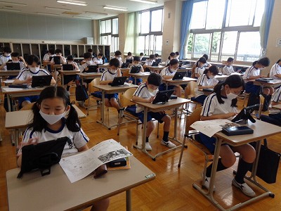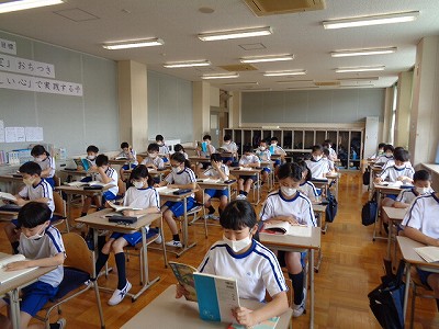 今日は5年生が全員登校しました。久しぶりに、みんな揃って国語の学習に取り組んでいます。