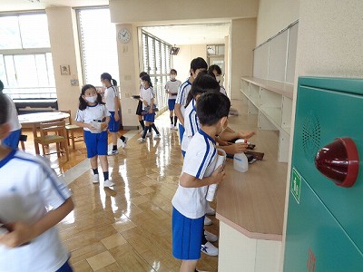 音楽室に入る前と終了後は、必ず手の消毒を行うようにルールを決めています。