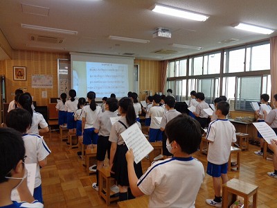 「♪心から心へ」という歌を、全校の「2020レパートリー曲」に揚げ、5年生の練習を始めました。
